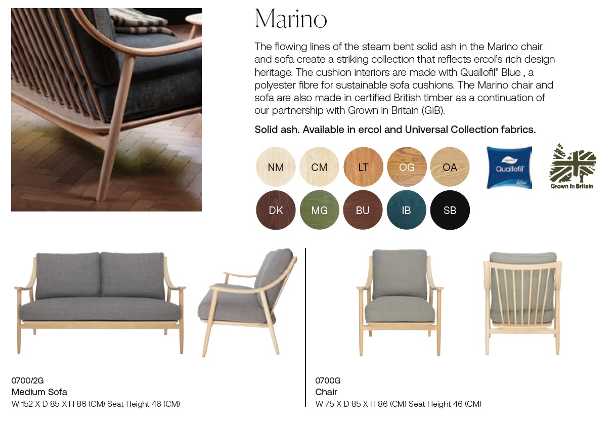 Marino has now taken on another consideration too; looking after our environment. As such, this collection now has Quallofil® Blue cushion interiors, made from recycled materials! Further, Ercol is proud to partner with Grown in Britain (GiB) to now be able to offer these Marino pieces in British-Certified ash.