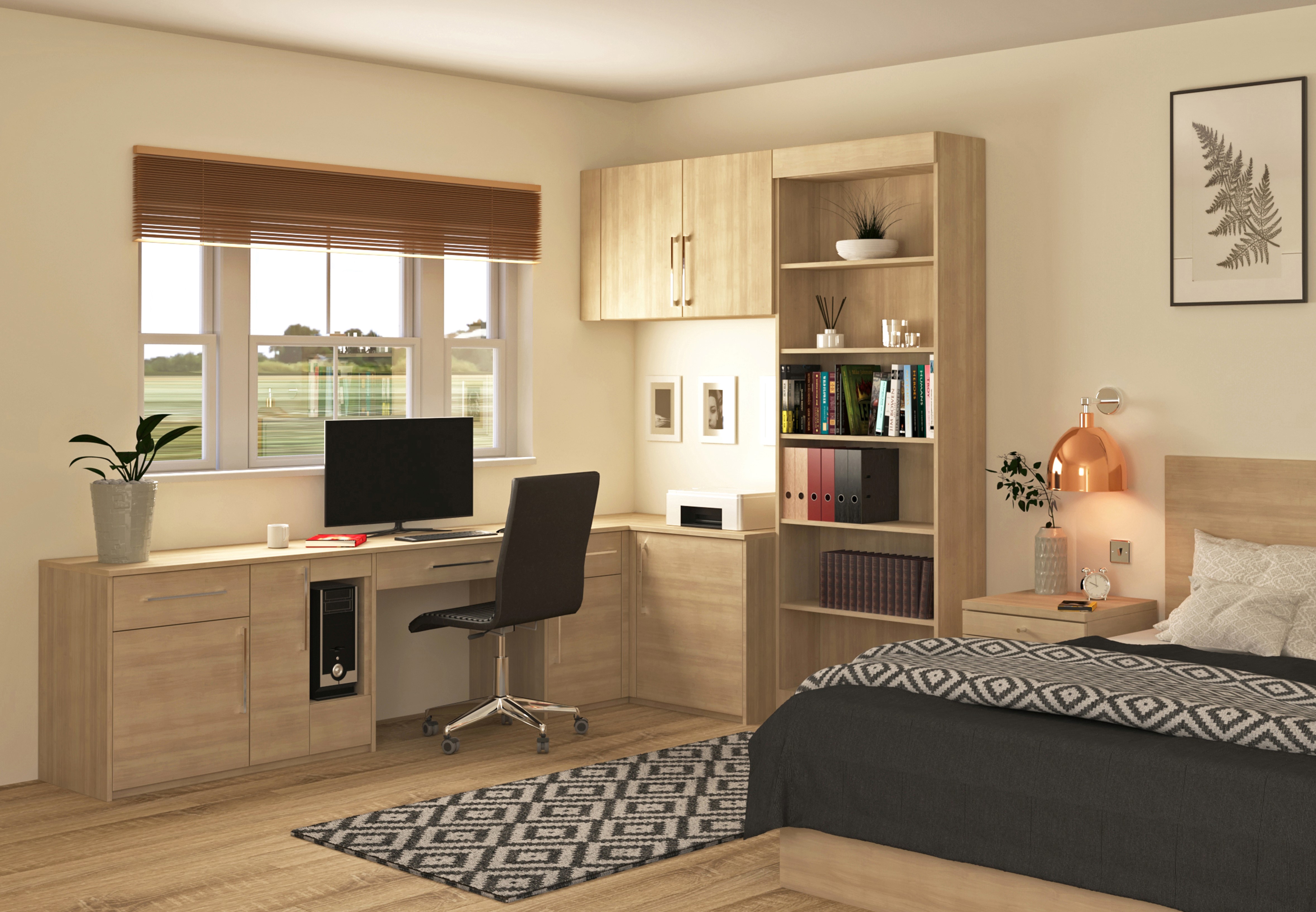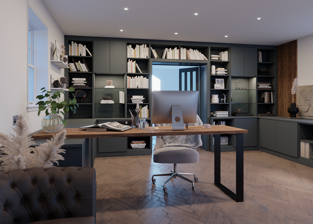 With our free design and estimating service you are closer to the perfect workspace than thought possible! We have a team of specialist craftsmen who will install your British made fitted home office furniture with electrics, cable management and flooring.