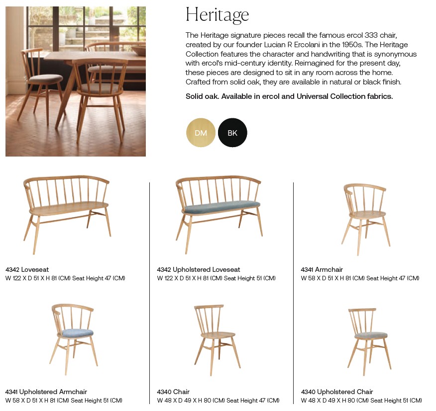 The Heritage Seating Collection includes the following ranges: