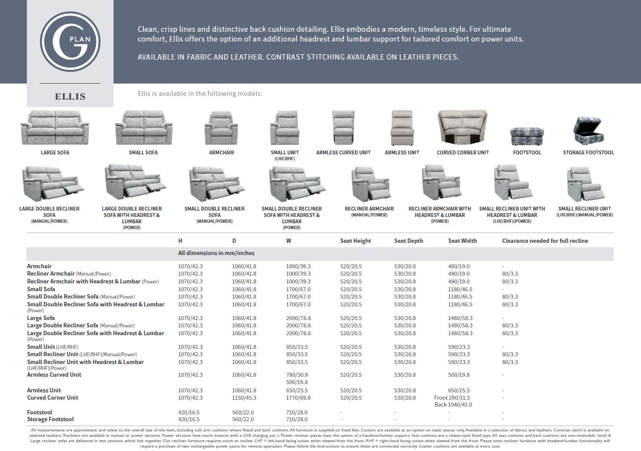 • Recliner options are available across the range in manual and power, along with the choice of left or right-hand facing (LHF/RHF) modular units.
