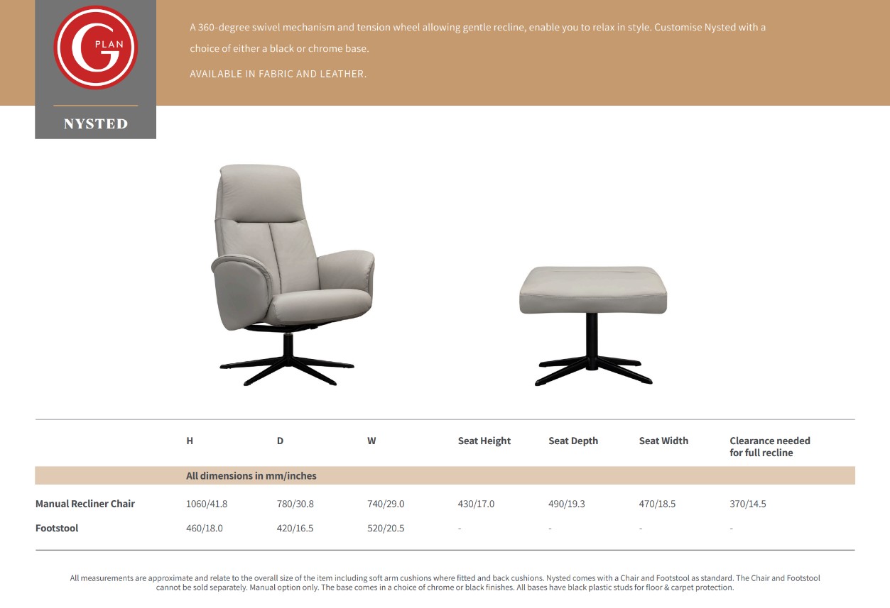 Nysted is a simple chair and stool combination, aiming to offer a simple solution for your home... the most comfortable seat in the house! A manual recliner chair is adjustable using a tension wheel beneath and is operated by leaning back. The beauty of this mechanism is that, based on the user's height and frame, the chair will naturally recline into a position that most inherently suits that person's body contours and comfort requirements. The backrest cushion has a column of vertical stitching, which promotes great bolster support. Meanwhile, swept arms give a great level support.