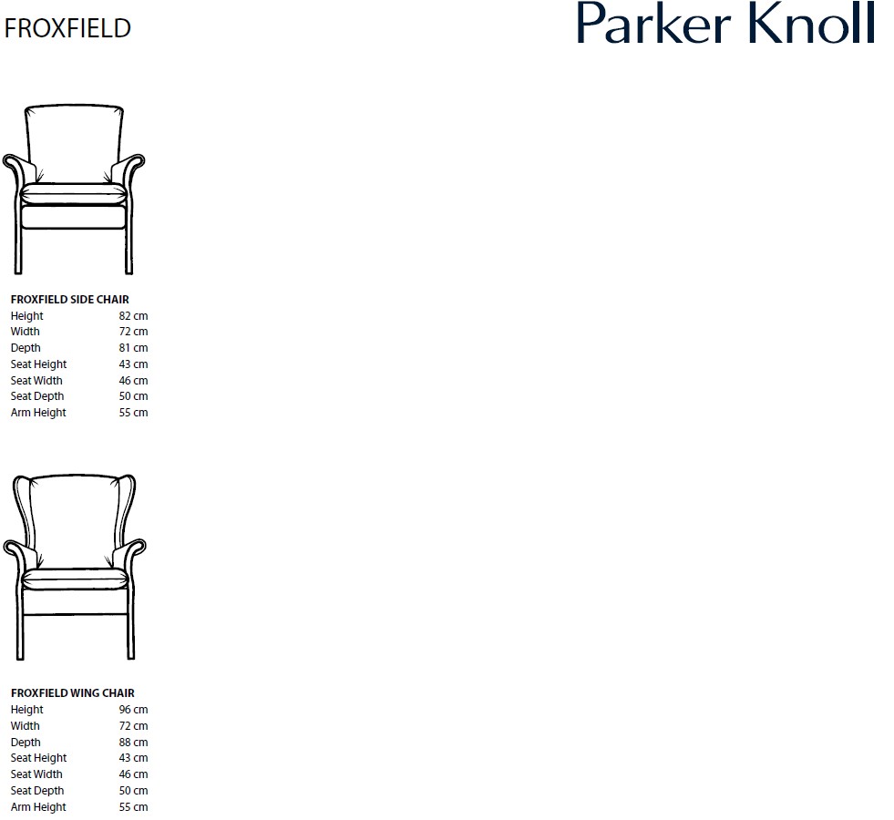 An original, timeless design! The Froxfield Collection is a firm customer favourite and will give you many years of comfort and support. The Froxfield encapsulates a part of Parker Knoll's history - it still uses the original 'bar springing' beneath the seat, first patented by Willie Knoll. With a sleek and sweeping wooden frontage to the arm and an elegant raked backrest, the Froxfield is quintessentially mid-century. Available as a lower 'Side Chair', or as a taller 'Wing Chair'. Choose from a huge range of premium Parker Knoll fabrics for your furniture. By purchasing a Froxfield, you really are buying a British-made quality item of furniture, crafted using the latest innovations in premium comfort technology.