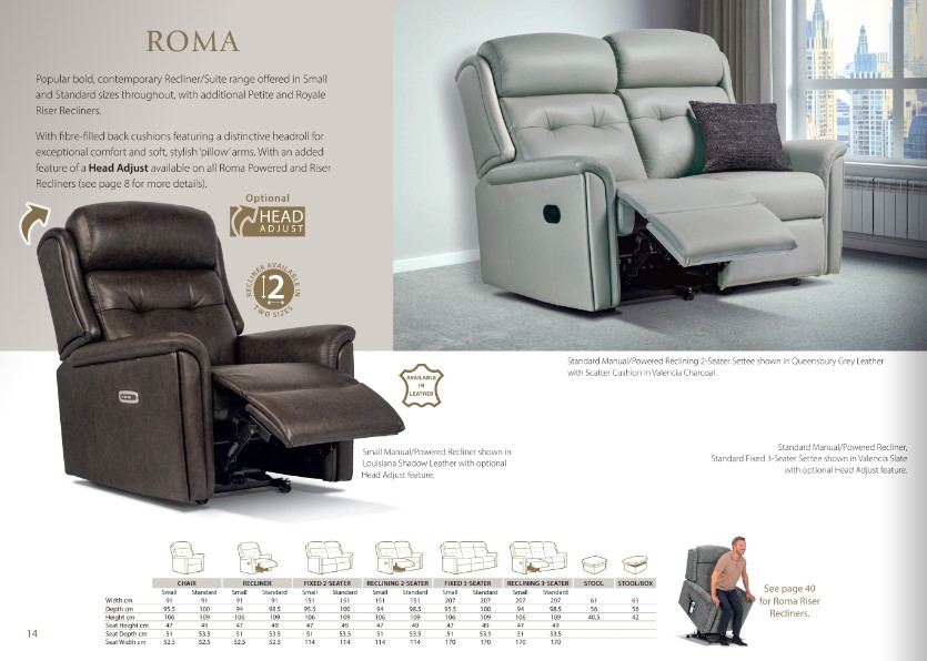 Roma is a versatile and exceptionally comfortable suite from British furniture-maker, Sherborne. Extremely popular, this bold and contemporary design features a beautifully-contoured backrest, with a distinctive head-roll for fantastic support. Meanwhile, the soft fibre-filled pillow-topped armrests are compact in design, maximising the seating space and minimising wasted space within your room. Slick and seamless recliner options complete an already very appealing range, making it easy to find a suite of furniture that is almost tailored to your requirements!
