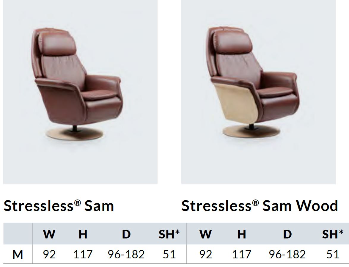 True to its Scandinavian design heritage, Stressless Sam has a generous and open design with round soft shapes and a curved back and seat that invites you to relax. All comfort functions and motions are motorised, synchronized and individually adjustable. Choose between all of the Stressless leather or fabric upholsteries in all colours – or delicate wood details on the side panels of the recliner. The Sam is available with two different bases and for extra comfort. Further, why not add massage and heating to create your own personal Stressless sanctuary?