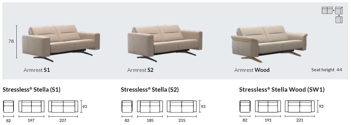 Please consult the product brochure attached above for the dimensions and specifications of all the pieces from the Stella Sofa Collection. If you require any further information, about this range or any other, please do feel very welcome to contact us and ask a member of our helpful sales team!